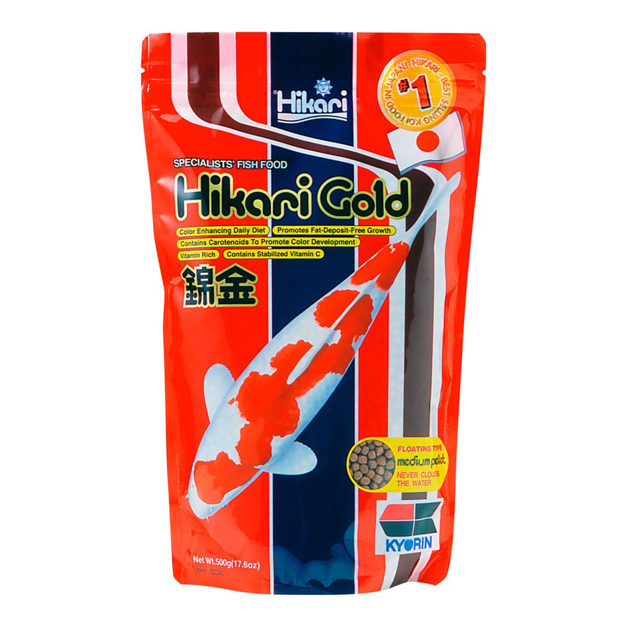 Hikari Gold is a daily diet, built upon decades of koi breeding and showing experience to meet the nutritional needs of koi while offering that desirable Japanese form. We use the highest grade of ingredients formulated in scientifically developed quantities to produce a diet that will bring the brilliant colors of your fish to life rapidly